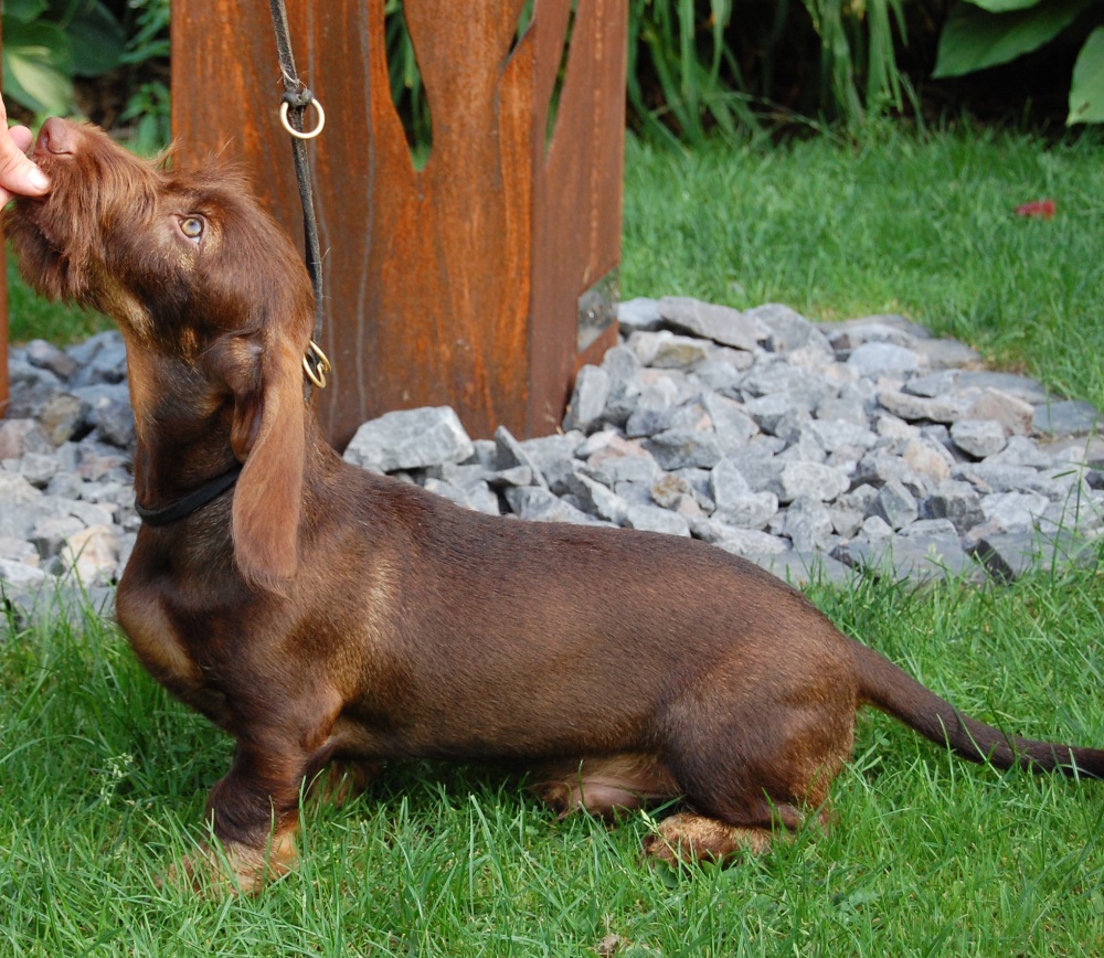 Schoko (Elaine vom Hürtgenwald) hat auf einer Zuchtschau ihr erstes