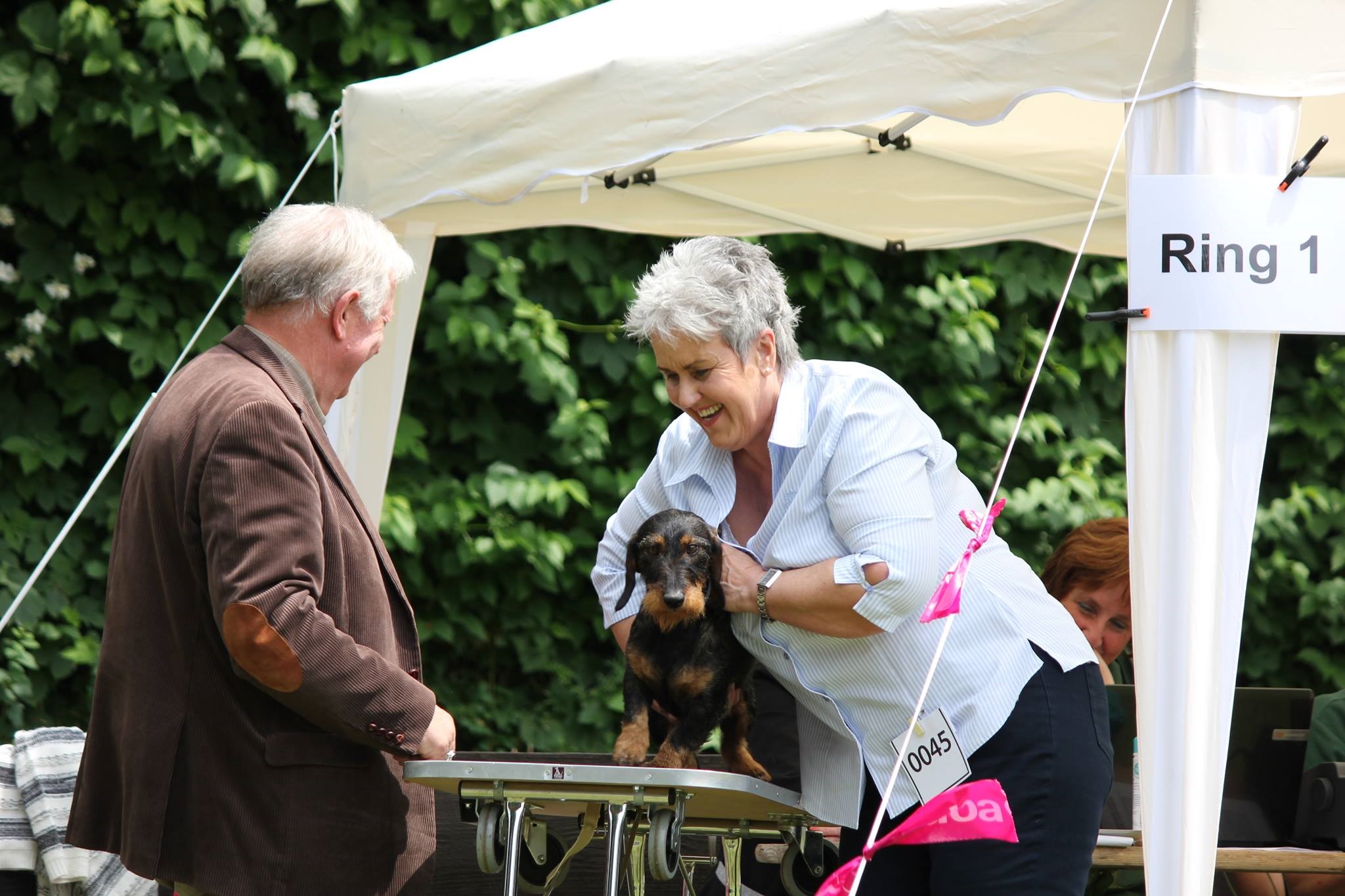 Schoko (Elaine vom Hürtgenwald) hat auf einer Zuchtschau ihr erstes