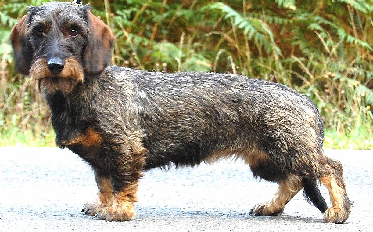 Eine typvolle, saufarbene, harsch behaarte Hündin des mittleren Schlages,