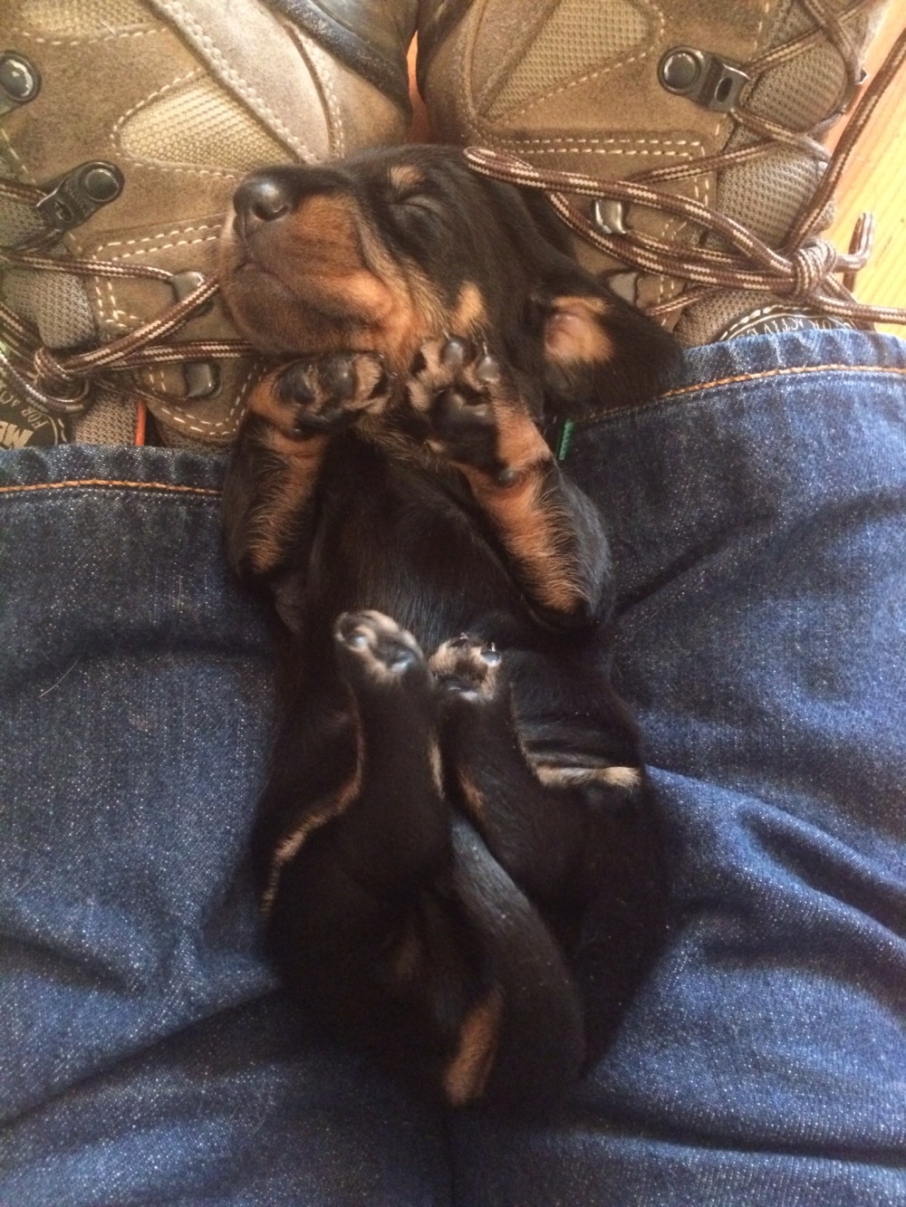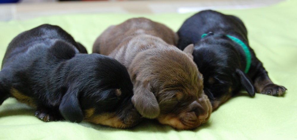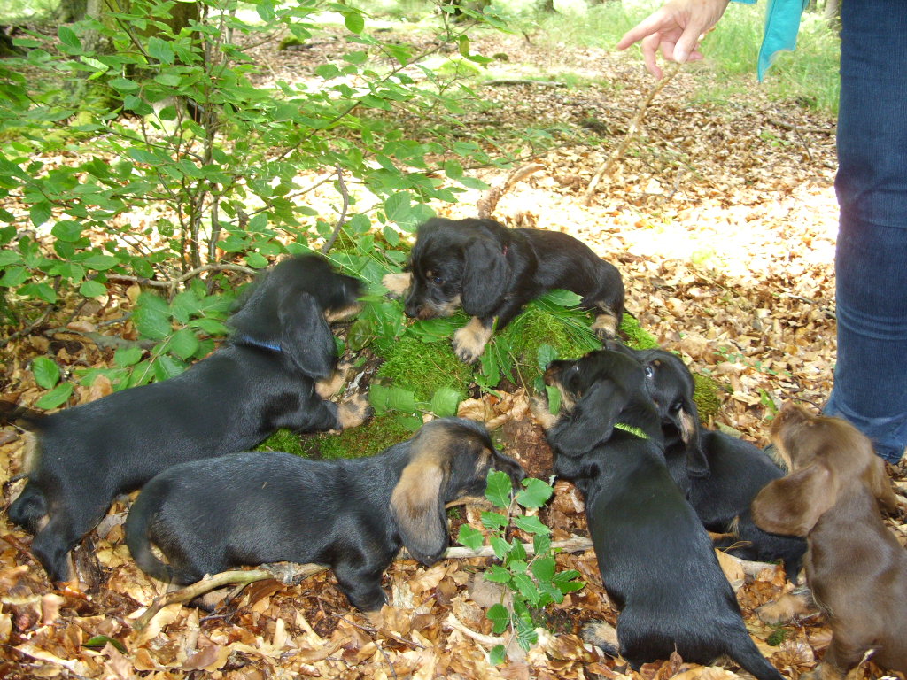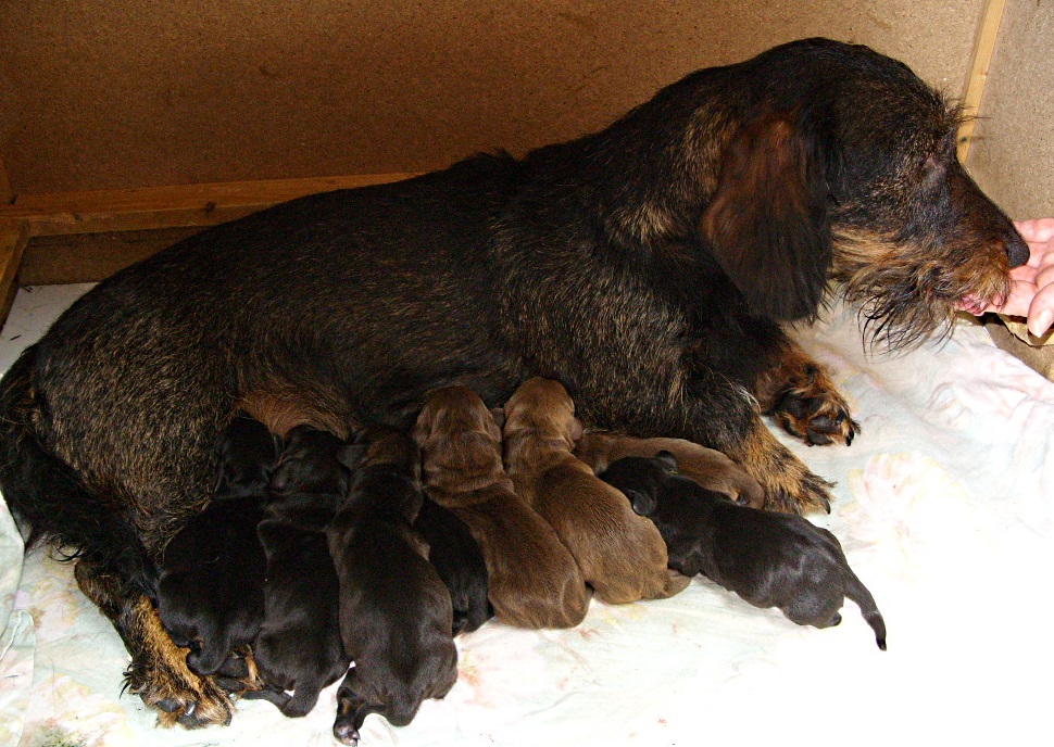 4 Rüden alle schwarz-rot, 3 Hündinnen braun, 1 Hündin dkl. saufarben wurden am 07.06.2015 gewölft.