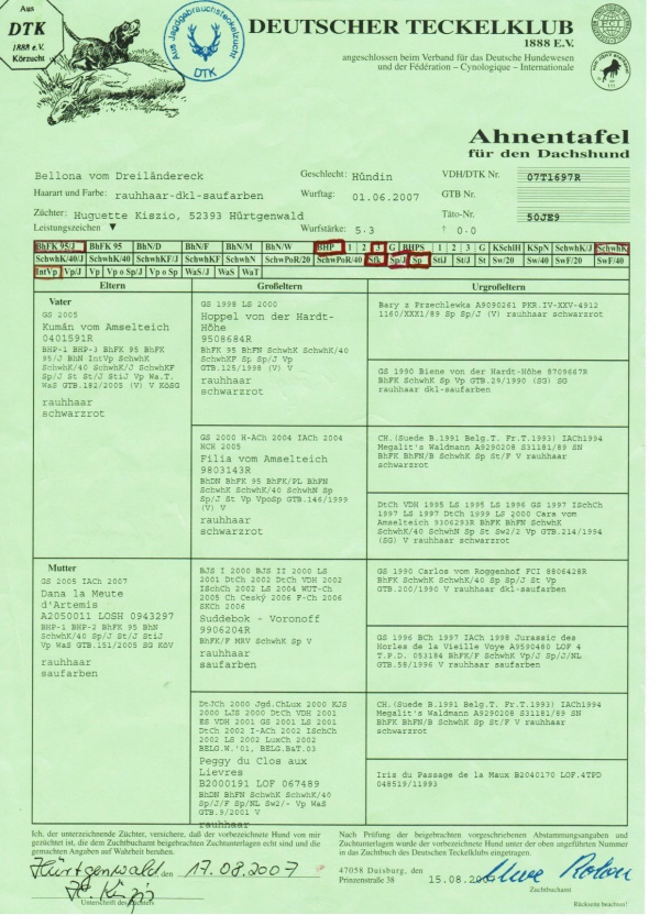 | Bellona ist eine vorzüglich aufgebaute, geschlechtsgeprägte Hündin mit freundlichem gelassenem Verhalten bei der Tischbewertung, vorzüglicher Körperbehaarung und deutlicher Bildung von Bart und Brauen, schwungvolles Gangwerk bei hoch erhobener Haltung des Kopfes, fester oberen und harmonischen unteren Linien, eine Hündin mit viel Typ und Ausstrahlung, die bei korrektem Bewegungsablauf auf Anhieb sicher in den Stand kommt. Nat. Ausstellung in Rheinberg - V1 (Beurteilung Herr Tornau) |